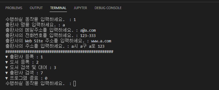 if input_command == '1': # 출판사 등록