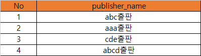만약 출판사 정보가 아래와 같이 등록되어 있다면,