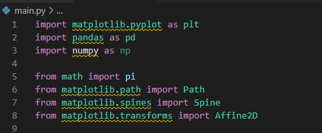 1-5 사용할 코드를 넣어보면 사용할 모듈들이 인식되지 못하는 것을 볼 수 있다.
