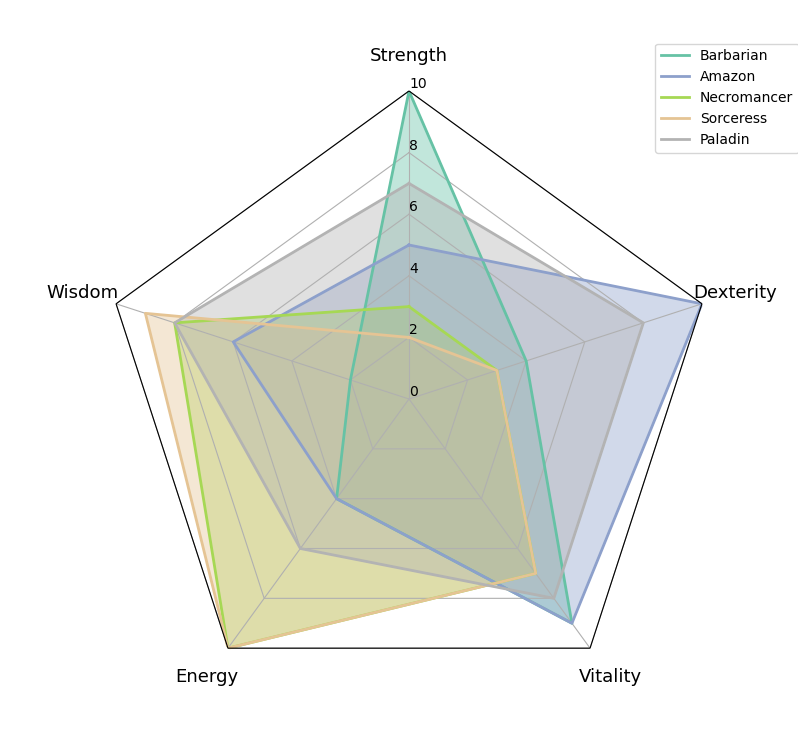 'Character': ['Barbarian','Amazon','Necromancer','Sorceress','Paladin'],