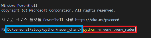 1-2. 원하는 경로에서 python -m venv .venv_rader 를 입력한다.(마지막 venv_rader 대신 venv만 사용해도 무관하다.)